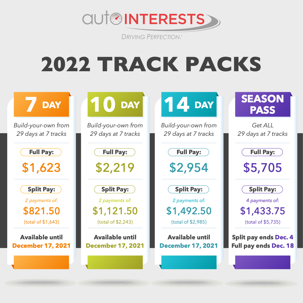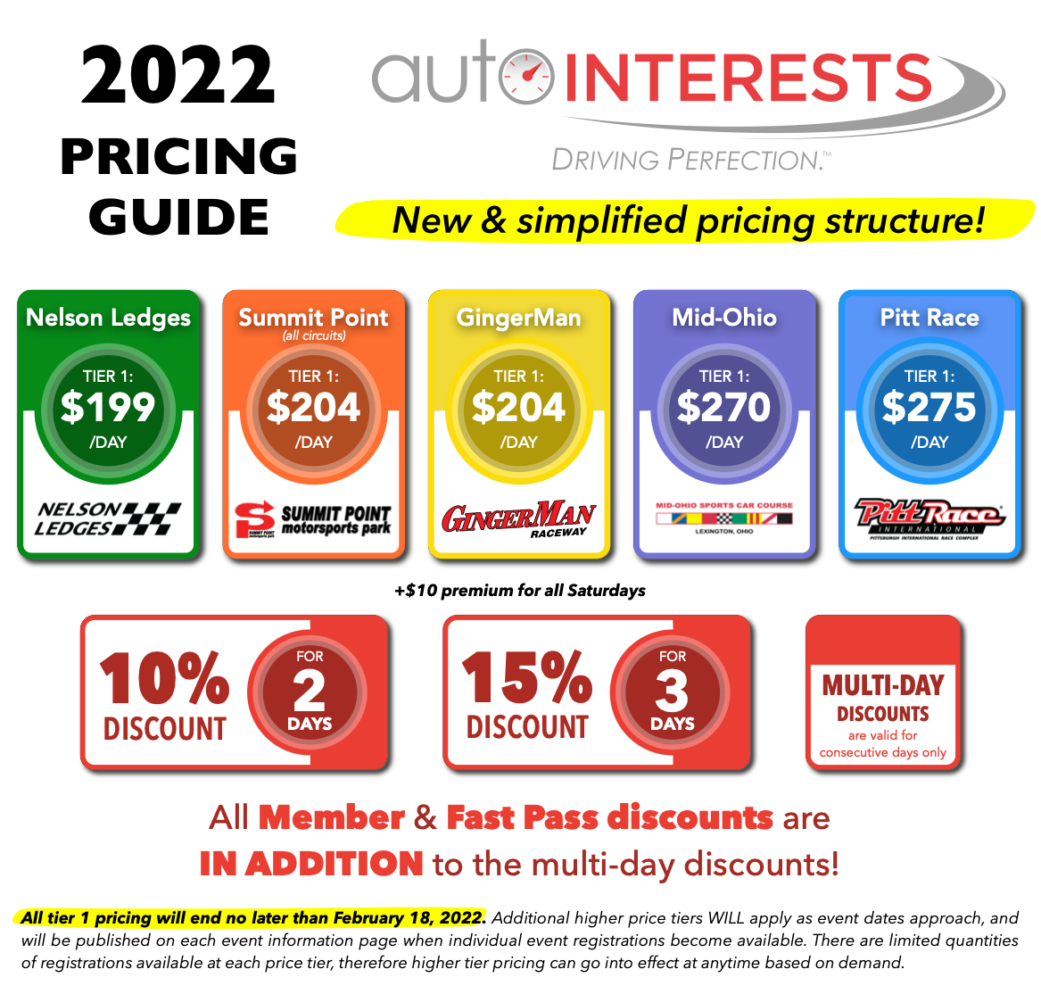 Pricing guide included below for planning purposes. We can't wait to see everyone on track again in 2022!