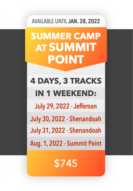 This Track Pack includes 4 days at 3 different tracks, all at Summit Point Motorsports Park!