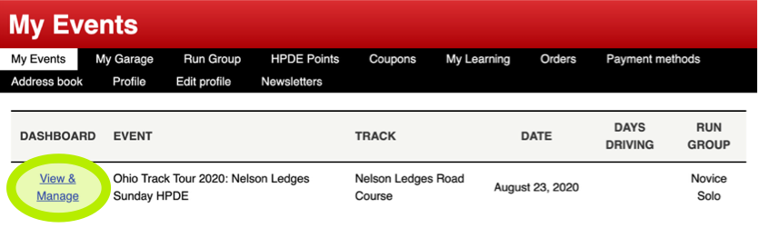 - Click on "View & Manage" for this event