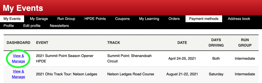 Log in and click on "My Account" -> "My Events" -> "View & Manage".