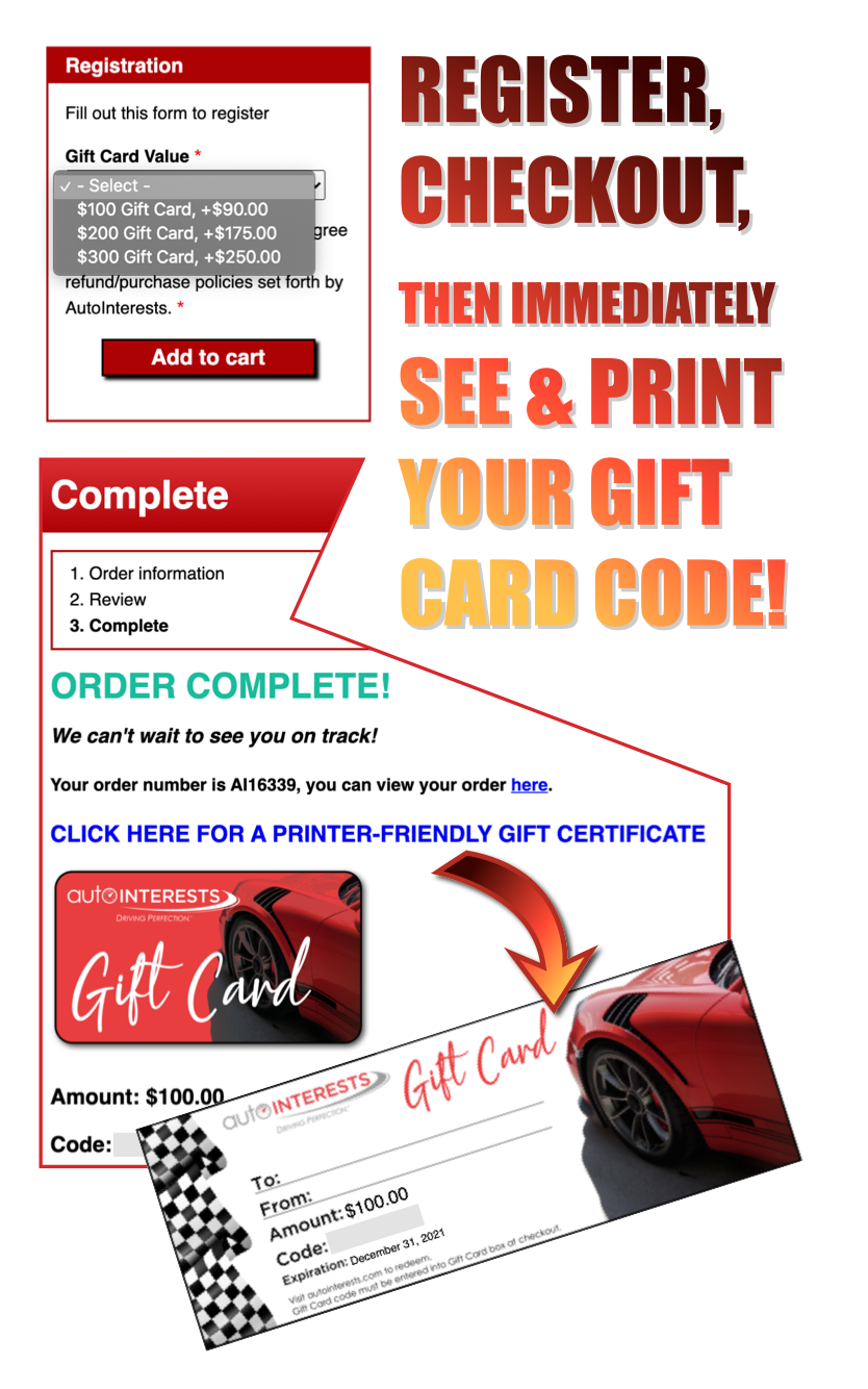 AutoInterests Gift Cards have never been easier! Purchase & receive instantly in printable form!